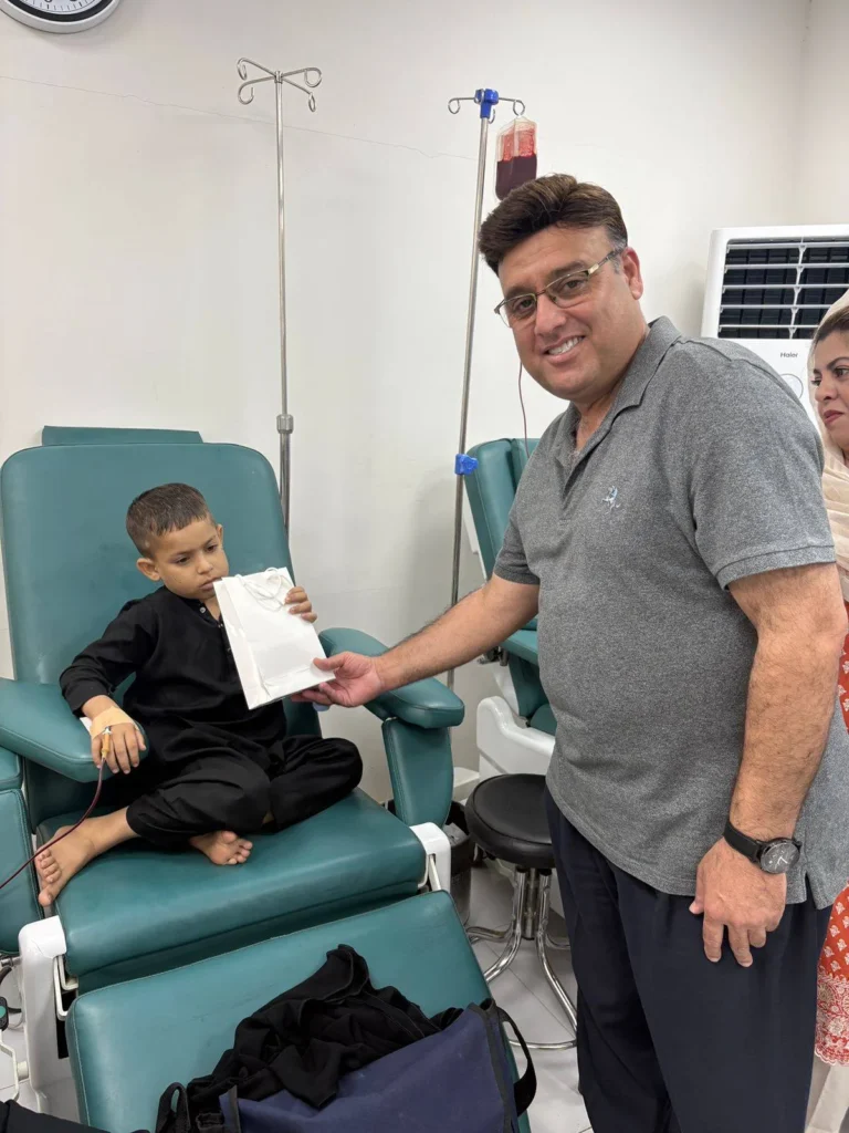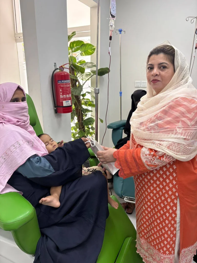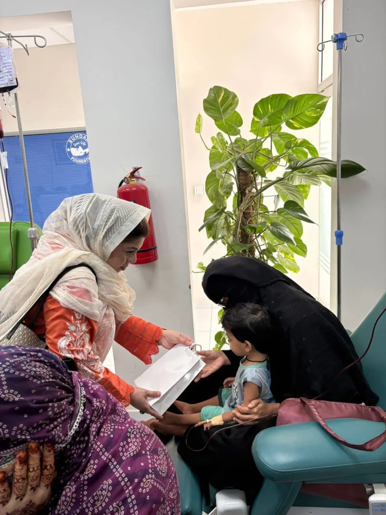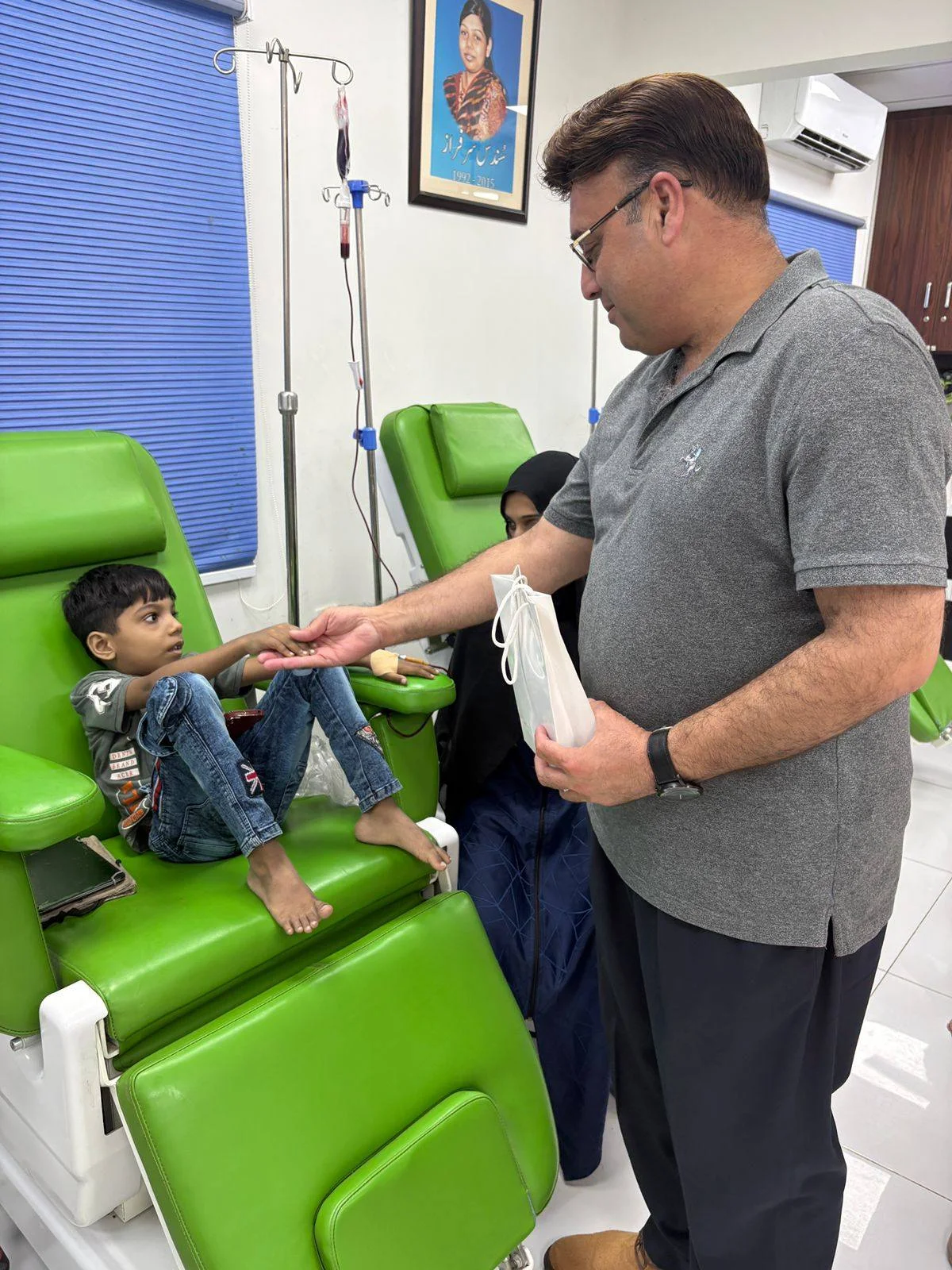 The distinguished guests were warmly received by the administration and presented with a bouquet of flowers. During the visit, the delegation was briefed about the institution’s ongoing efforts and various departments, especially focusing on the treatment of children affected by thalassemia.