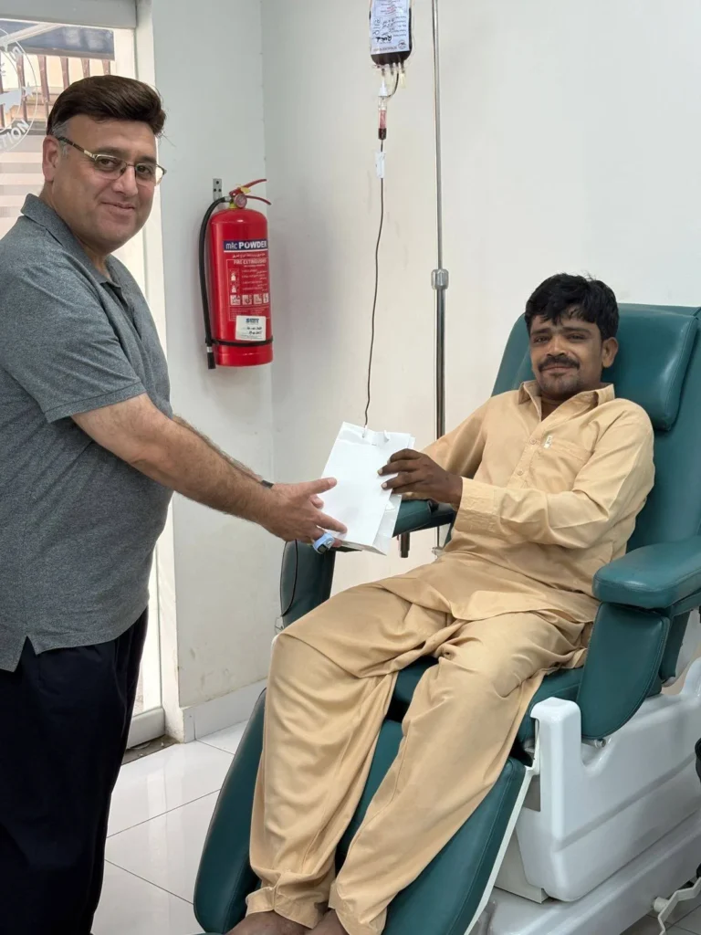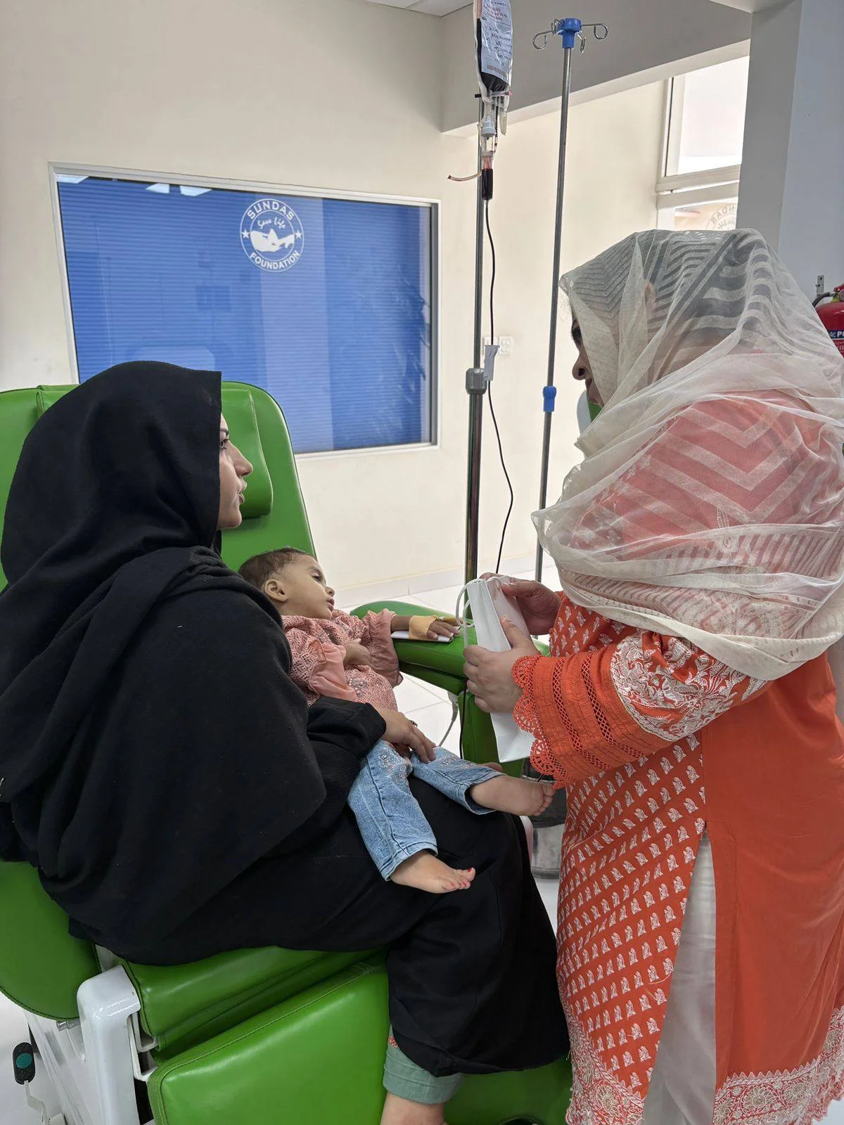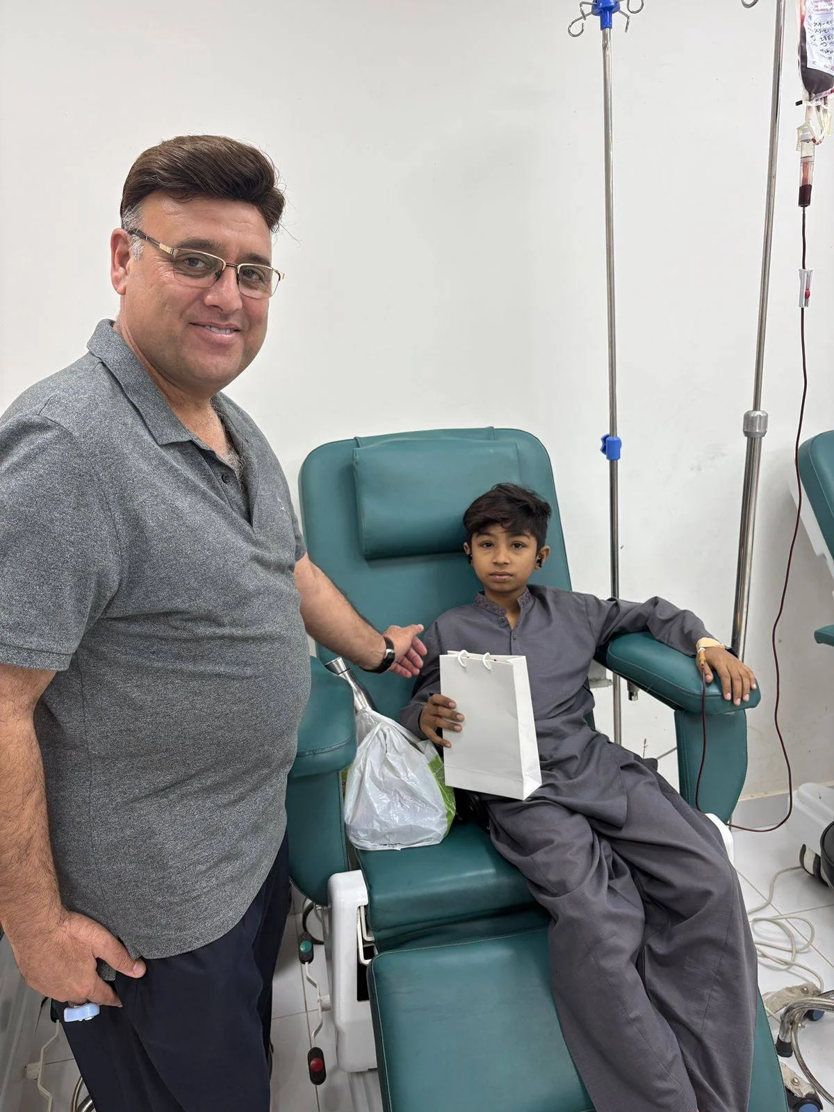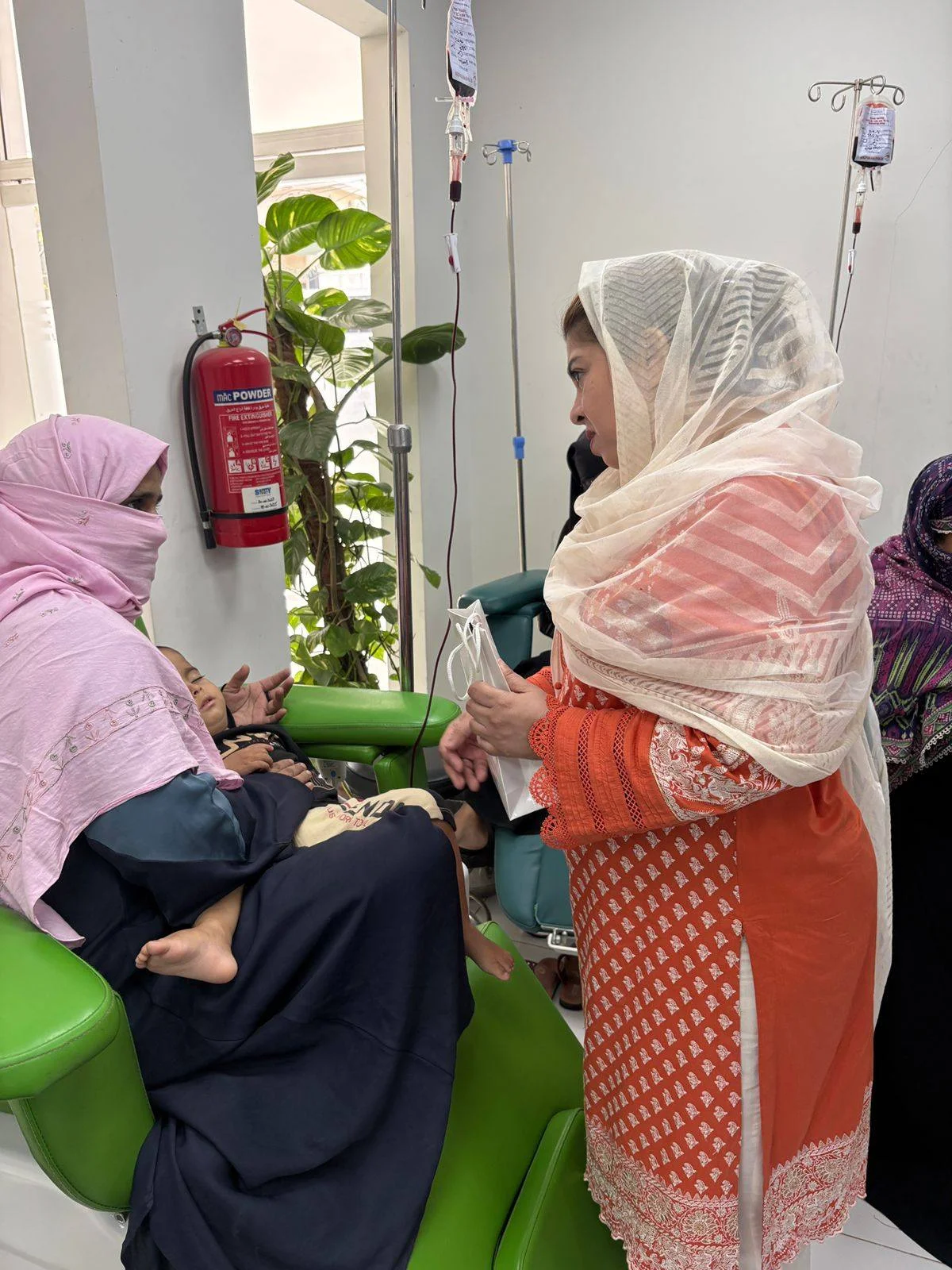 The distinguished guests were warmly received by the administration and presented with a bouquet of flowers. During the visit, the delegation was briefed about the institution’s ongoing efforts and various departments, especially focusing on the treatment of children affected by thalassemia.